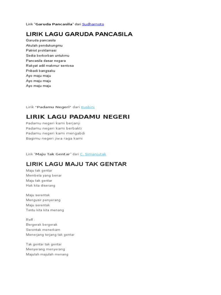 Not Angka Lagu Dan Lirik Spesial Lagu Wajib Nasional Nopomawon