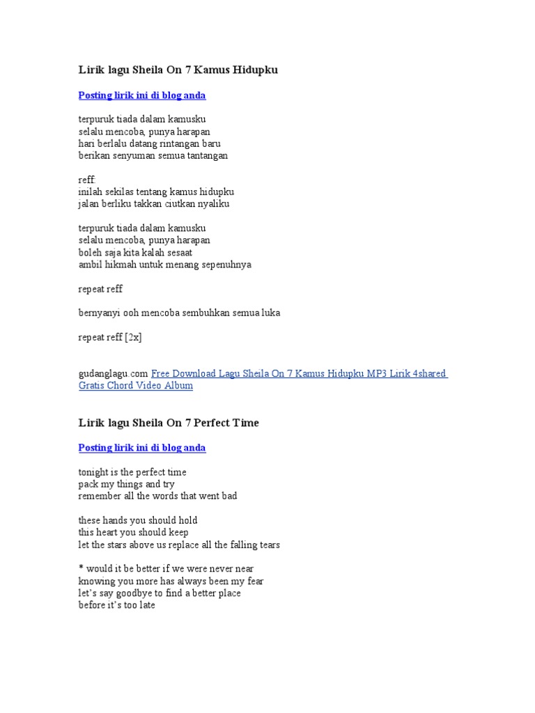 Lirik Lagu Sheila On 7 Kamus Hidupku