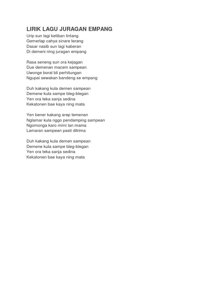 Lirik Lagu Juragan Empang Dan Terjemahannya Artikel Menarik